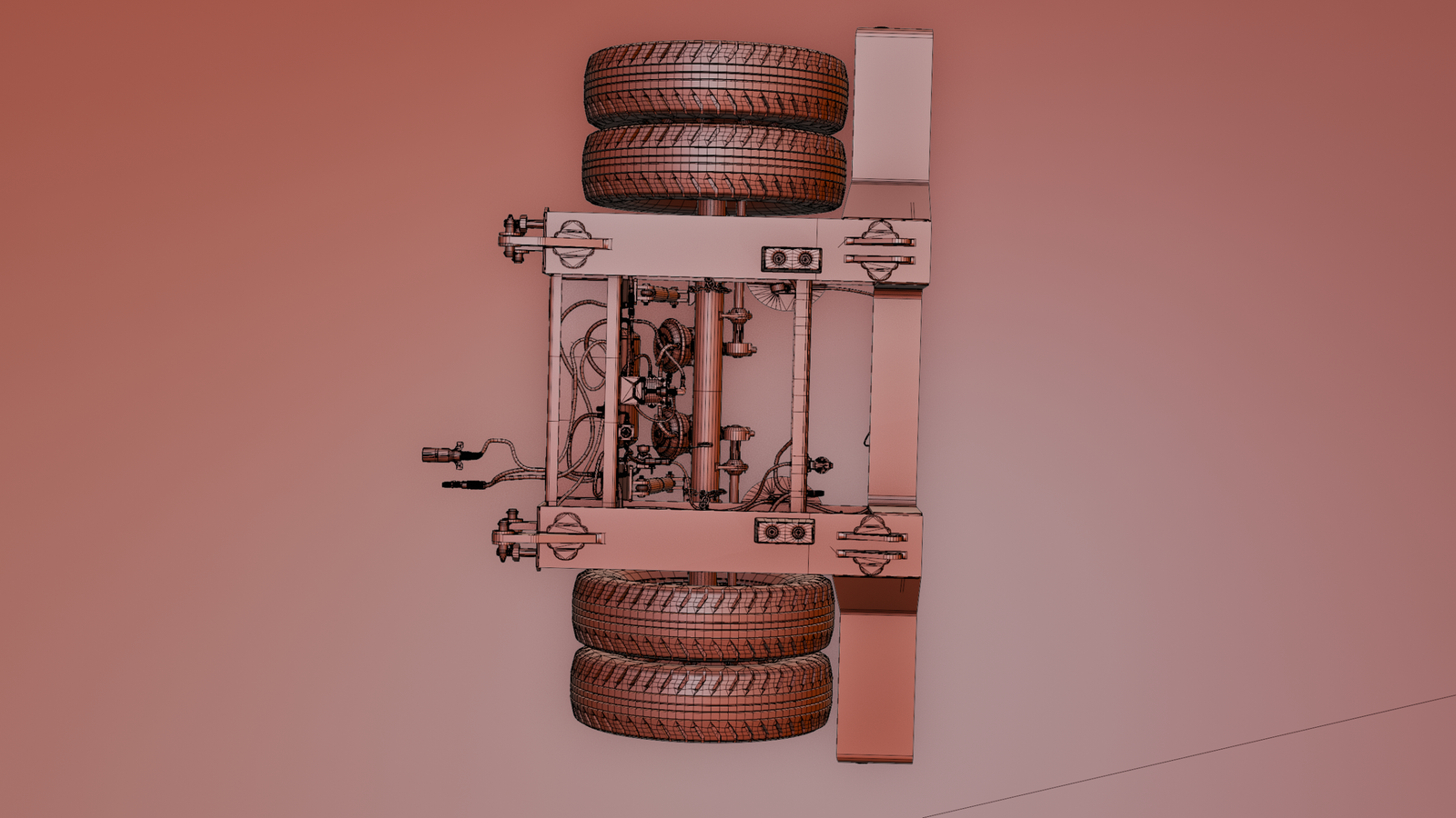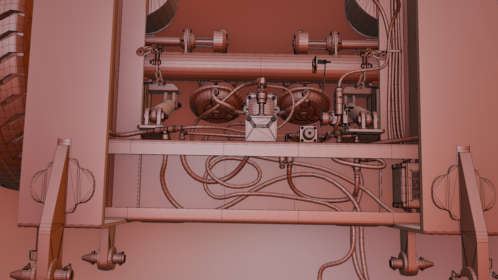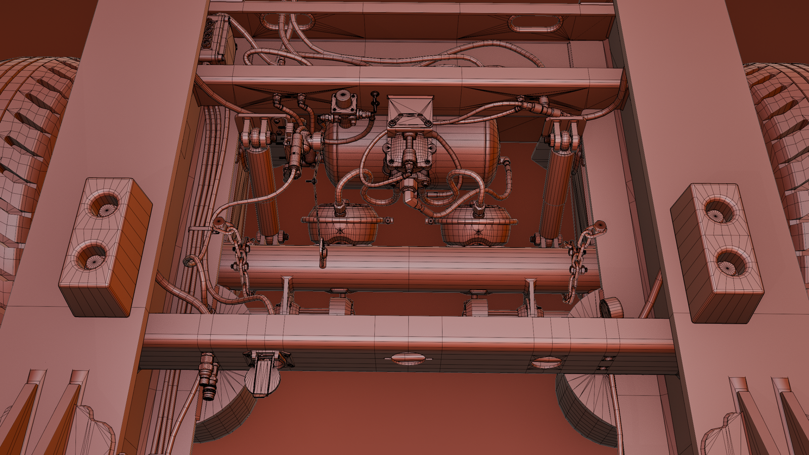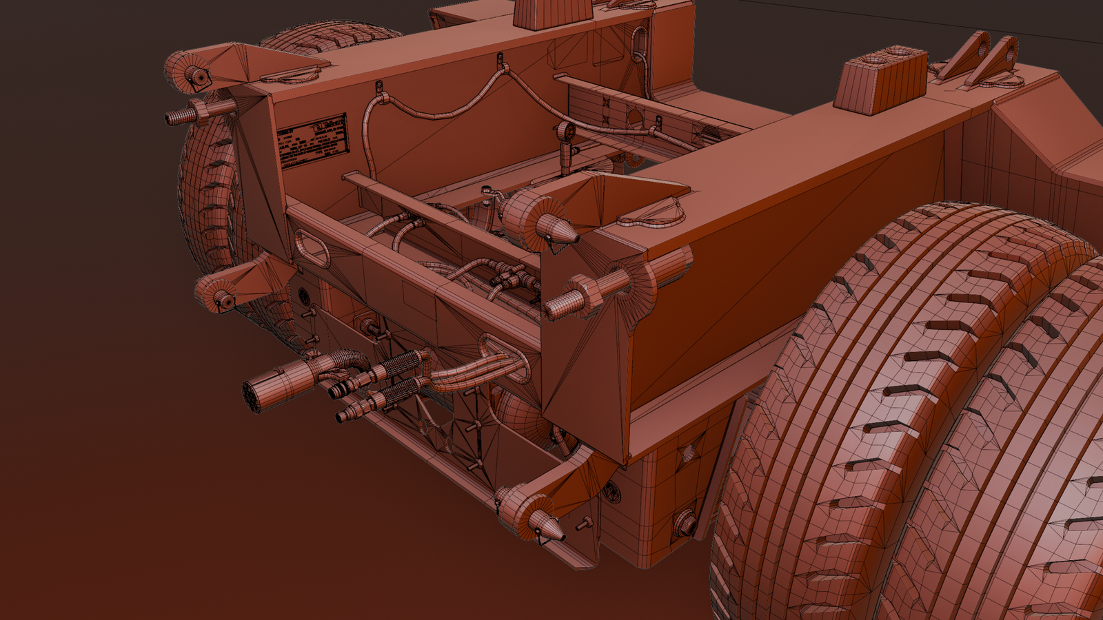 - The mesh is separated with movable hoses, axles, wheels, valves, and other movable parts for easier rigging and animation.