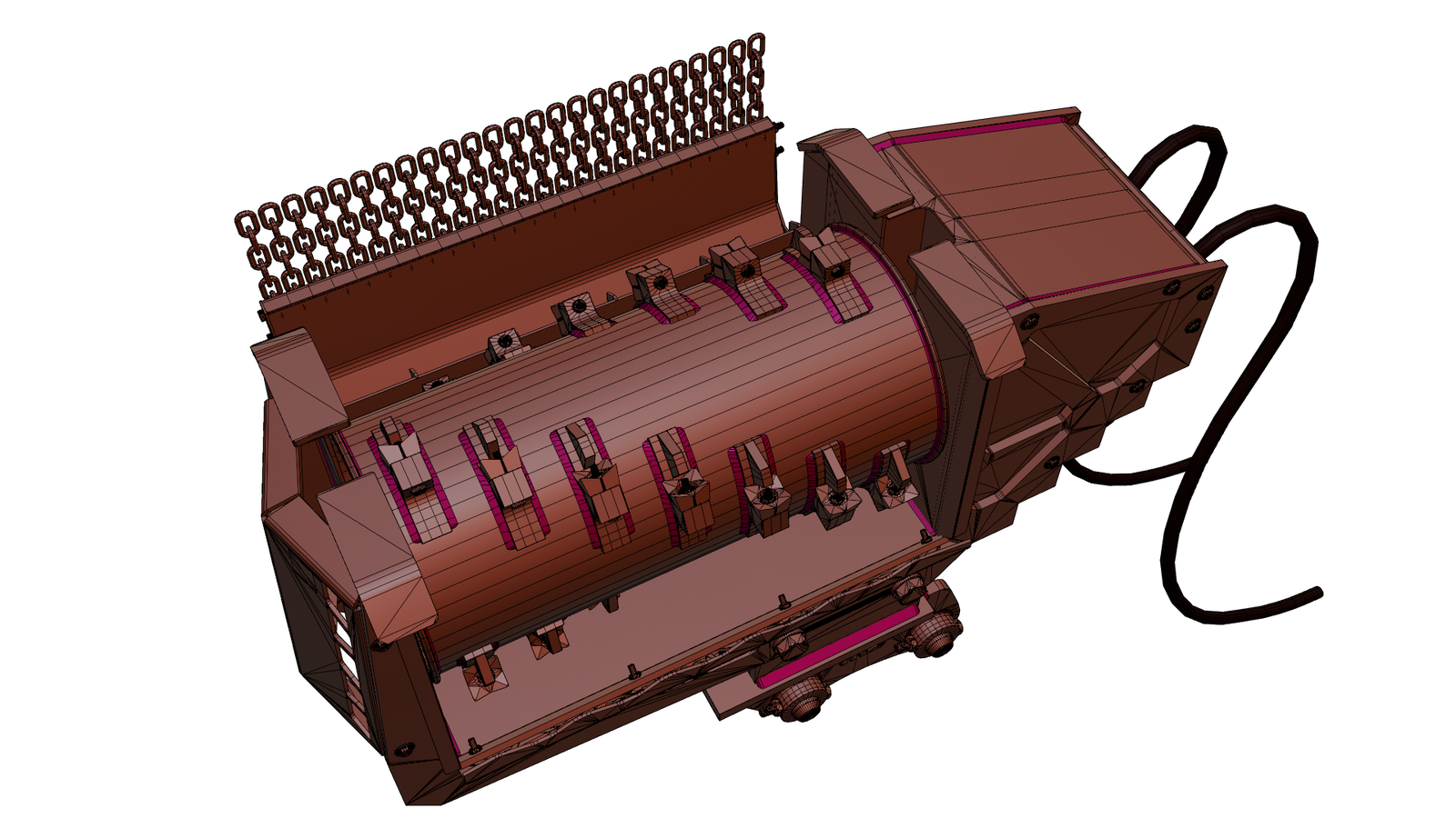 - Separated mesh objects by moving parts: main mesh,Pin Mesh,Hoose and cylinder.